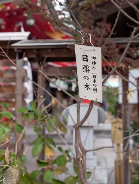 「目薬の木」という御神木があり、樹皮を煎じて点眼薬や洗眼薬として江戸時代から利用されていたとの伝承があります。